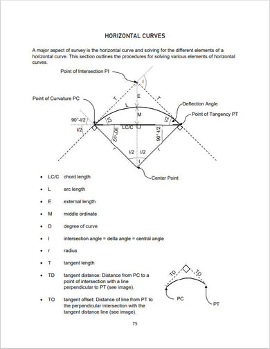 Horizontal curves are a guarantee on the exam! The manual spends a great deal of time explaining horizontal (and vertical) curves. The diagrams make for easy interpretation of the explanations as each element of the curve is broken down.