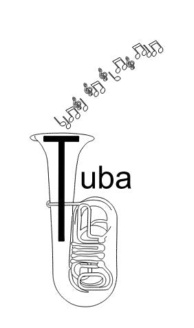 shaped tuba horn helps solidify the letter sound associated with “T” as Tah; t.